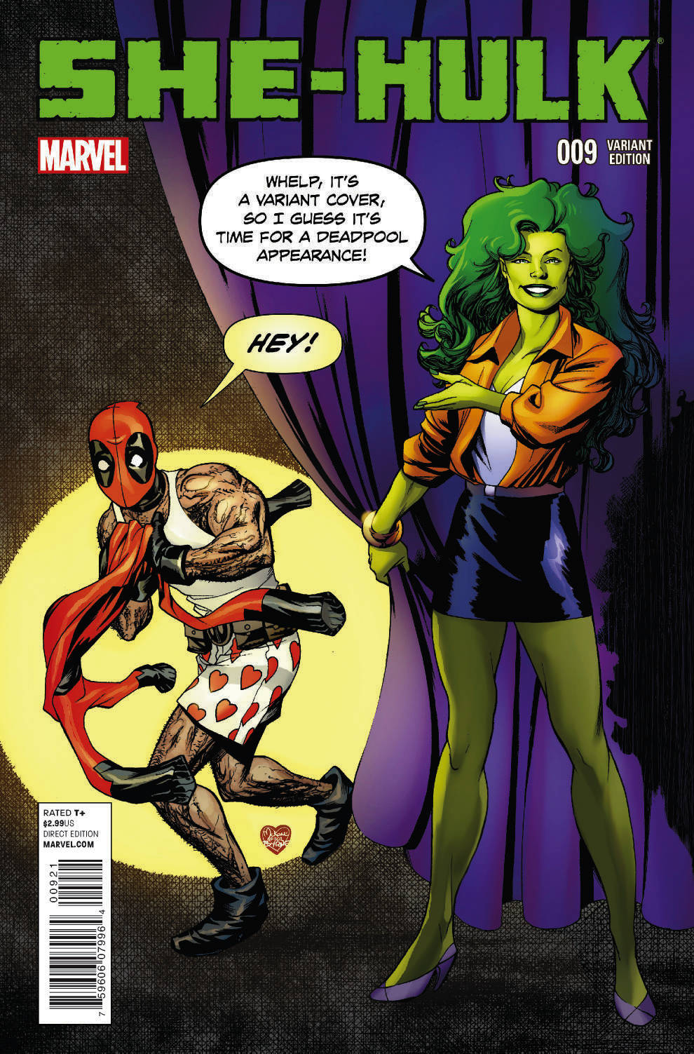 She-Hulk #9 variant cover - She-Hulk and Deadpool break the fourth wall via Previews World with usage type - Editorial use (Fair Use)